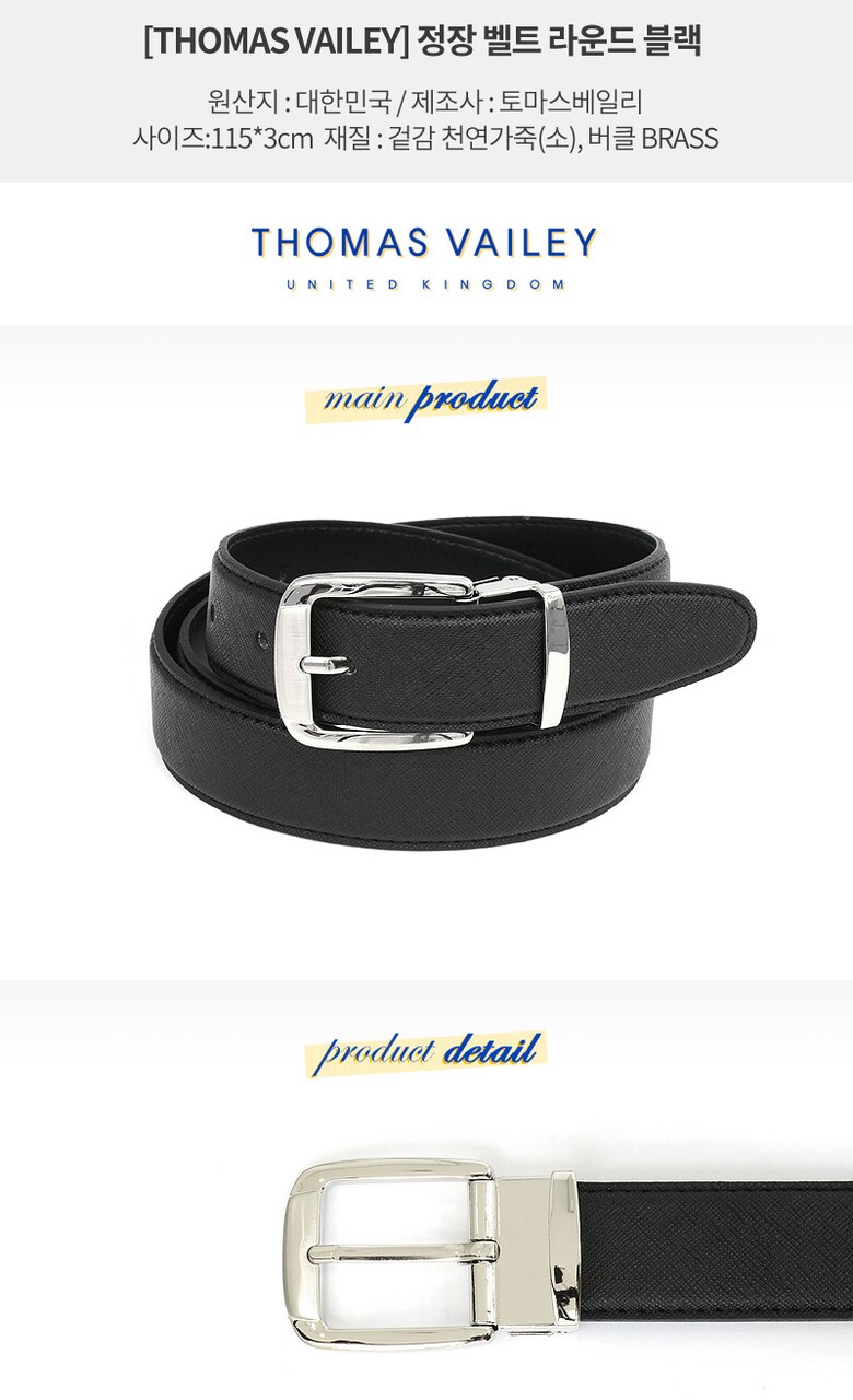 [THOMAS VAILEY] 토마스베일리 정장 비조 수동 소가죽 벨트 - 라운드 블랙