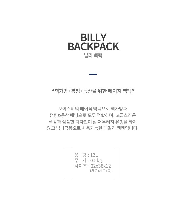 아동백팩 책가방 학교 백팩 BILLY BACKPACK