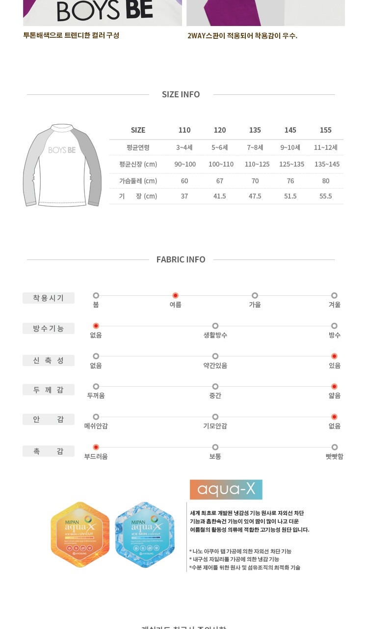 아동수영복 자외선차단 긴팔수영복 래쉬가드 스윔웨어 라이트퍼플