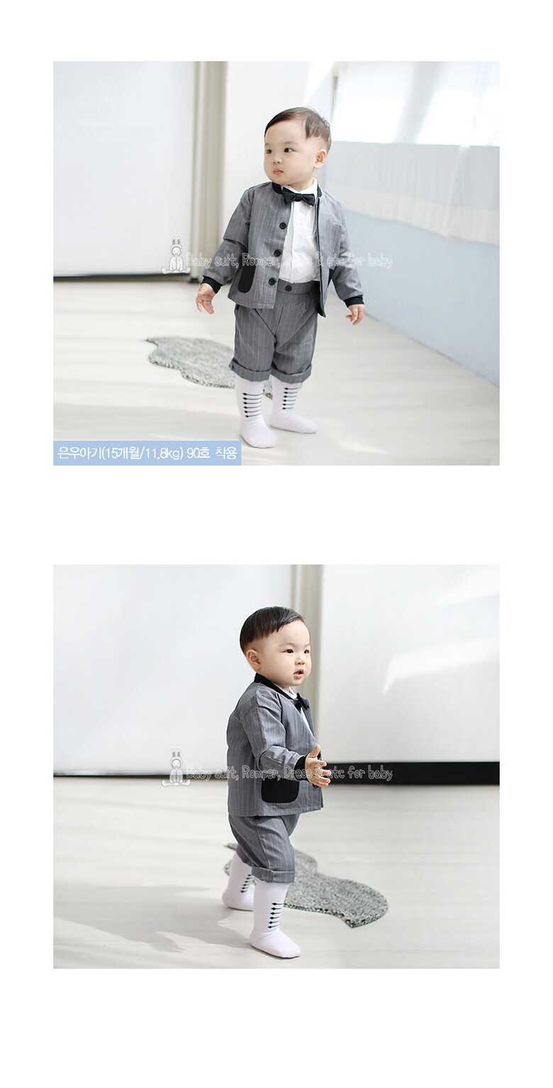 루이스 스트라이프 포켓 배색 아기정장 세트 1316