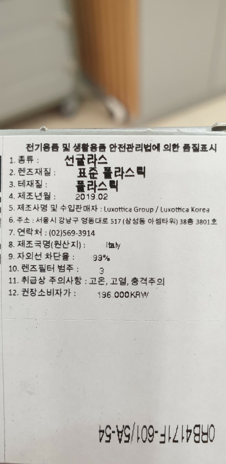 | 4. 제조사 | LuxotticaGroup/LuxotticaKorea |