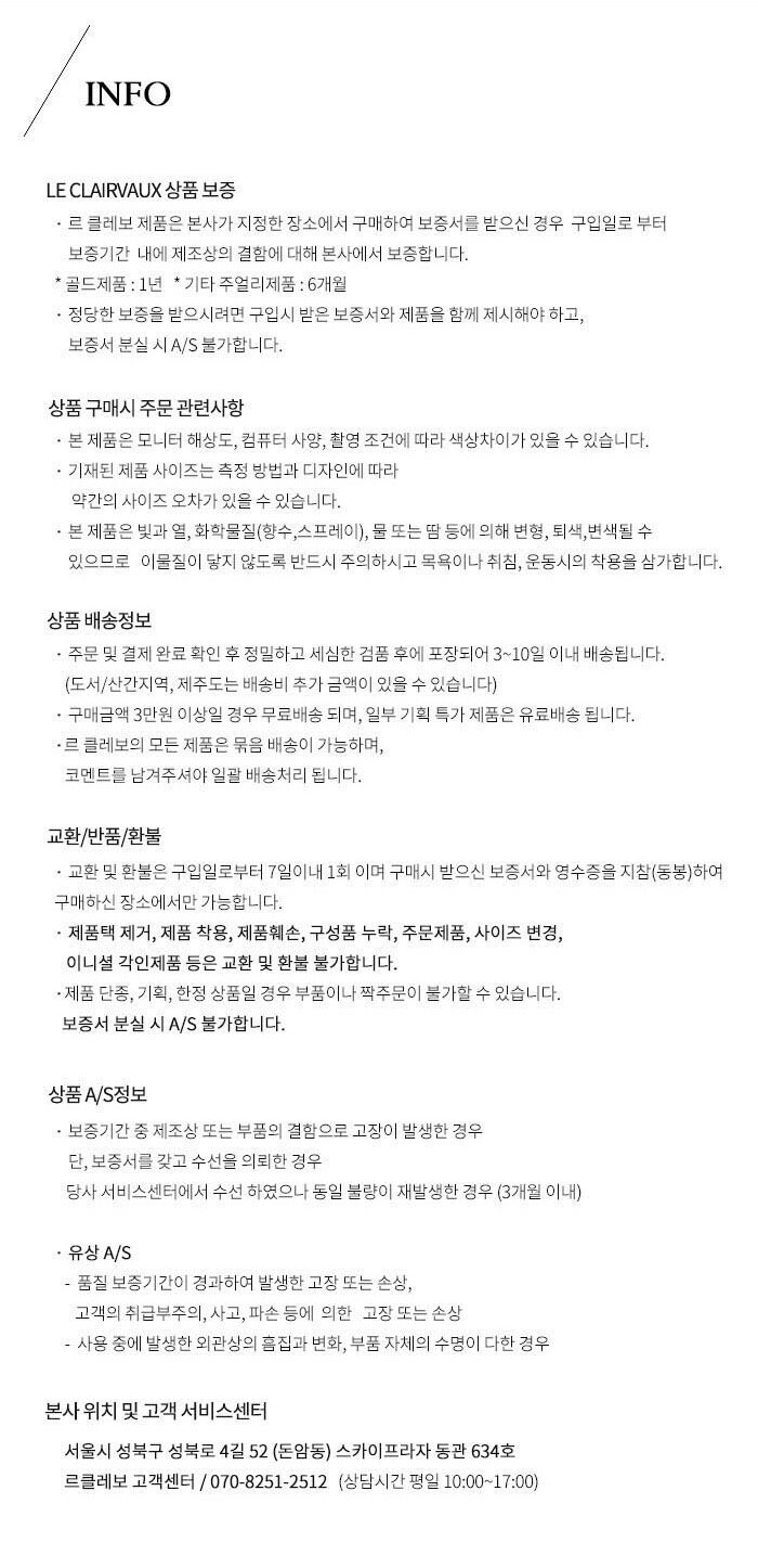 10. A/S 책임자와 전화번호 르클레보 고객센터/ 070-8251-2512 (상담시간 평일 10:00~17:00)
