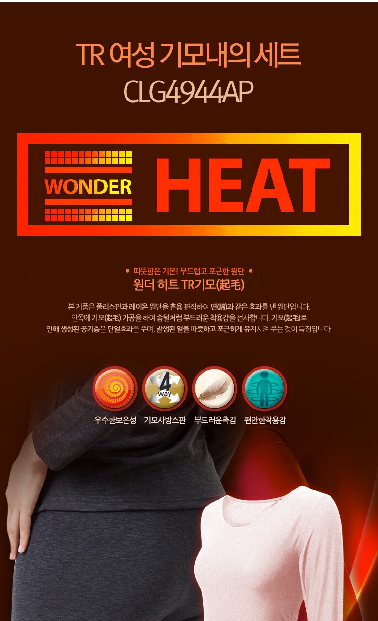 [크리비아] 원더 히트 TR 여성 기모내의 세트 clg4944ap