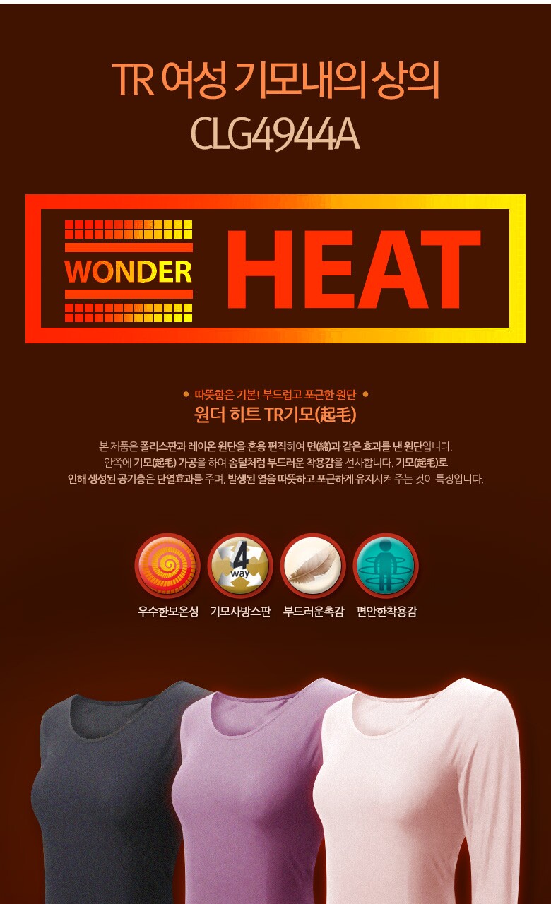 [크리비아] 원더 히트 TR 여성 기모내의 상의 clg4944a