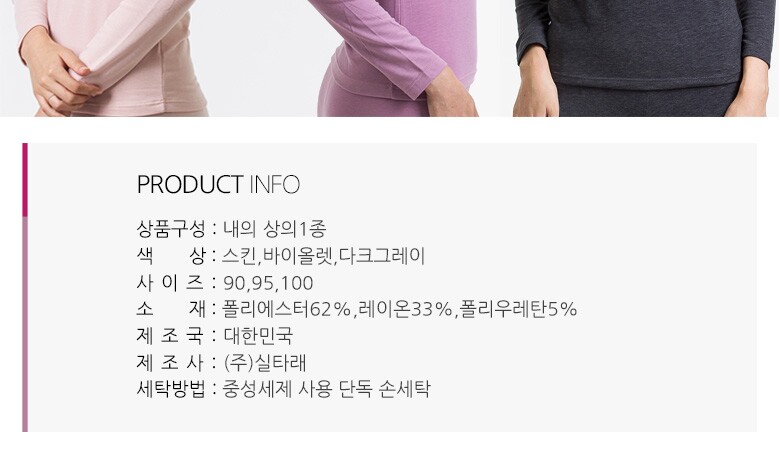 1. 제품 소재 (섬유의 조성 또는 혼용률을 백분율로 표시, 기능성인 경우 성적서 또는 허가서) | 면25%,폴리에스텔37%,레이온33%,폴리우레탄5% |