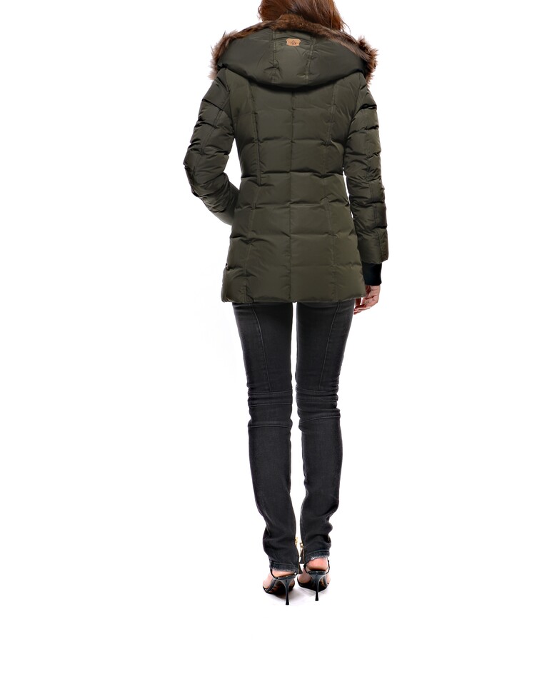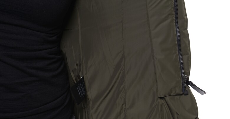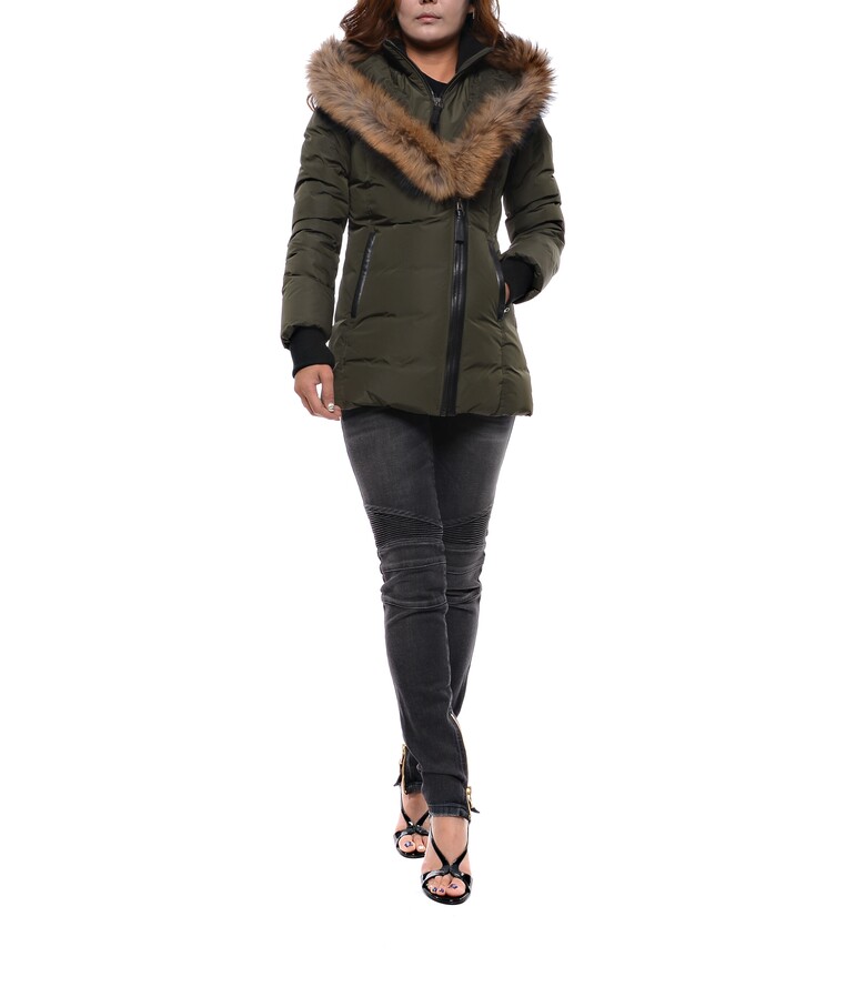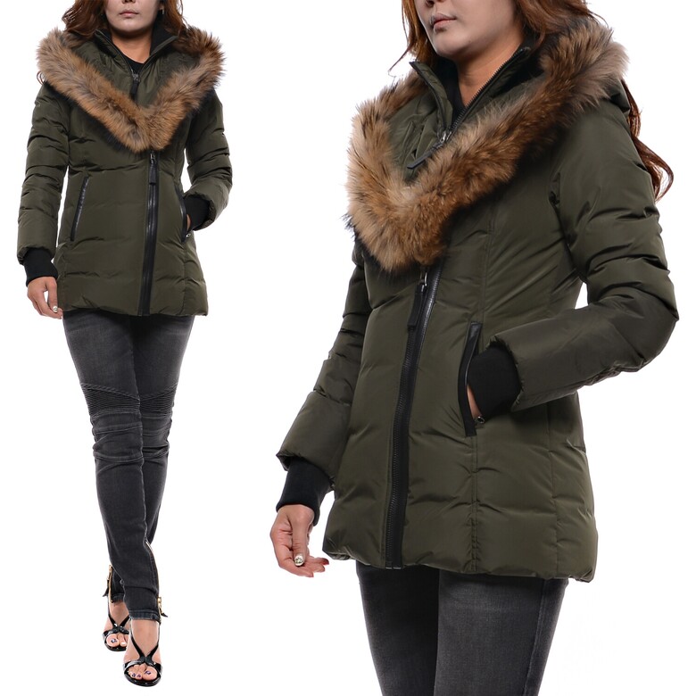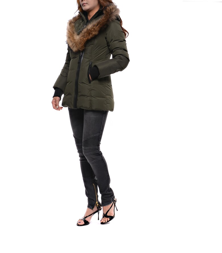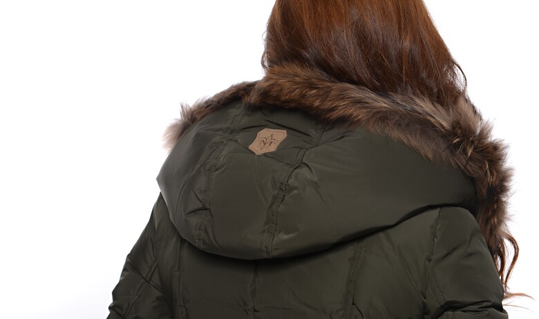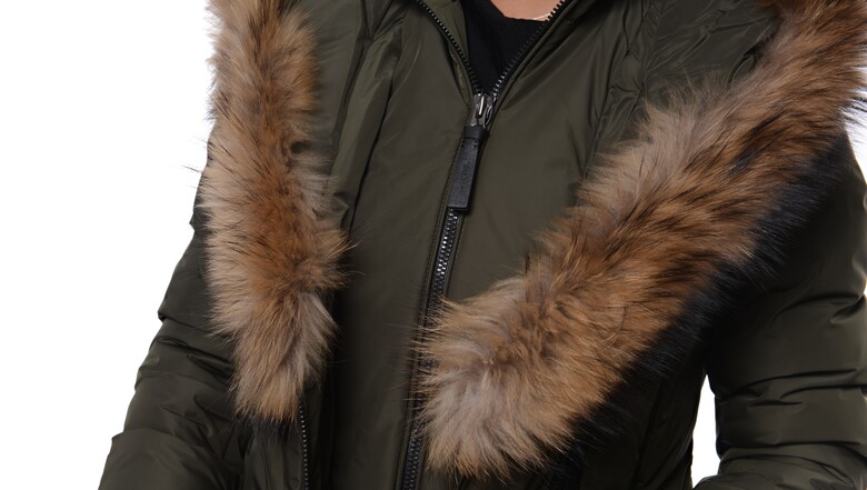 | 1. 제품 소재 (섬유의 조성 또는 혼용률을 백분율로 표시, 기능성인 경우 성적서 또는 허가서) | 겉감 100% 폴리에스테르, 충전재 90% 덕다운, 10% 페더, 라쿤퍼 |