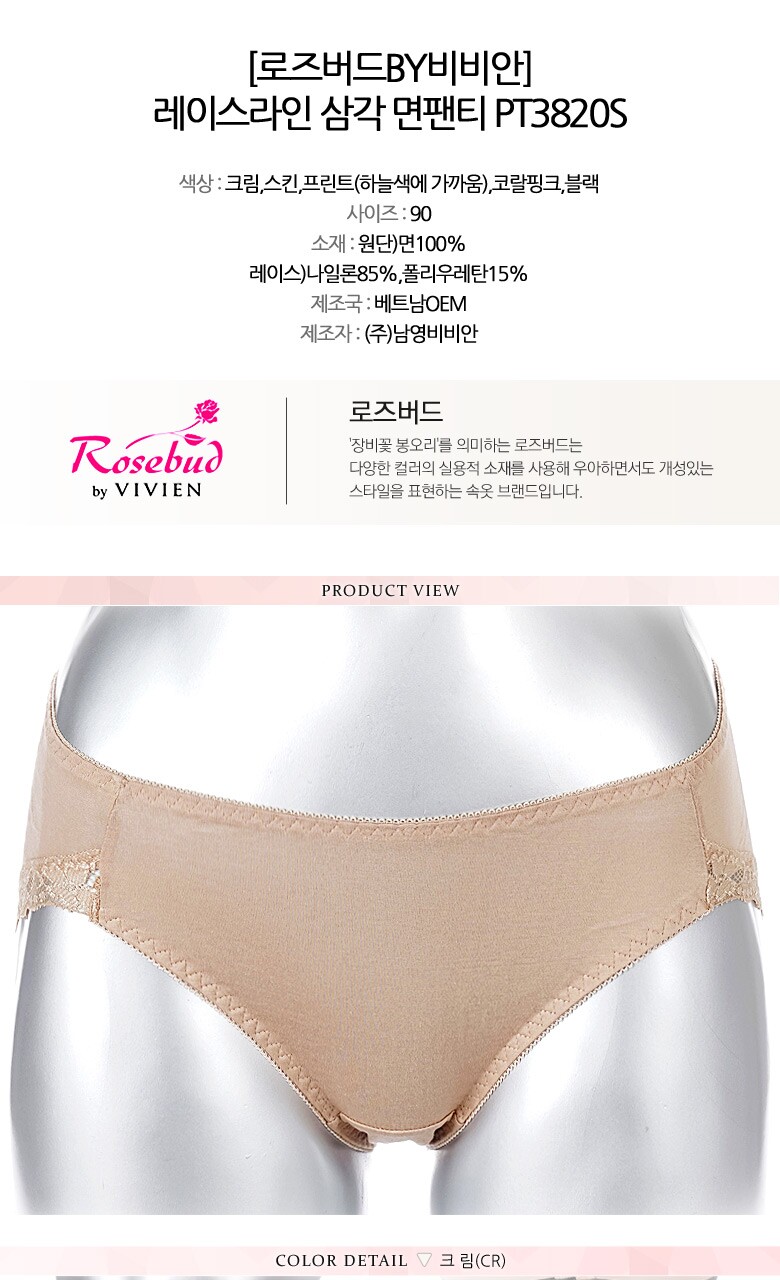 로즈버드BY비비안 레이스라인 삼각 면팬티 !! PT_3820S (4장)