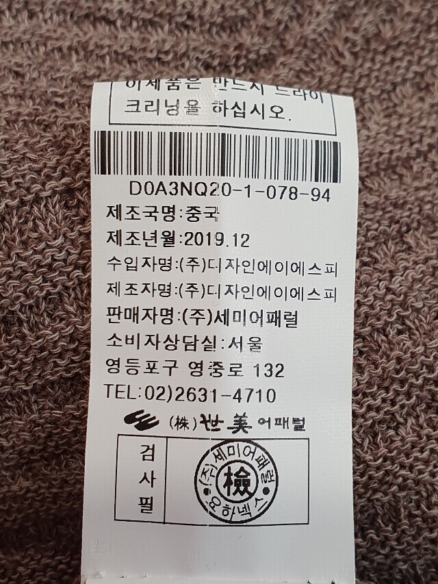 | 6. 세탁방법 및 취급시 주의사항 | 상품상세참조 |