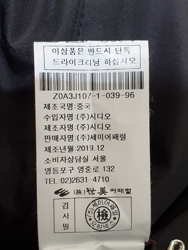 • 처음 배송된 상품상태와 다를 경우(세탁/착용 후 외출하신 경우) 반품이 불가합니다.