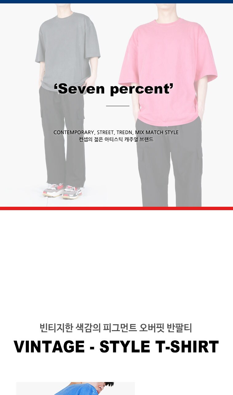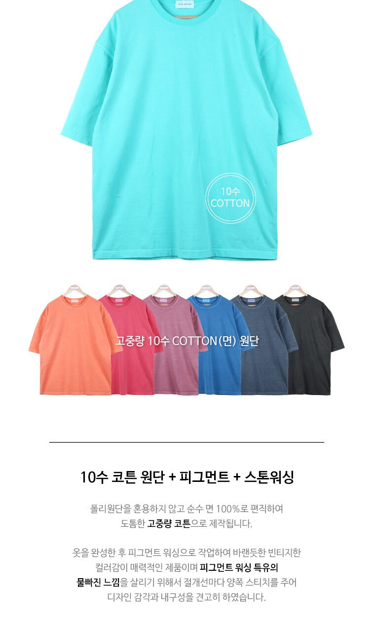 [세븐퍼센트] 코튼 워싱 오버핏 피그먼트 반팔티셔츠