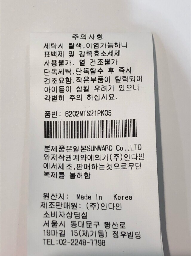 | 6. 세탁방법 및 취급시 주의사항 | 손빨래 |