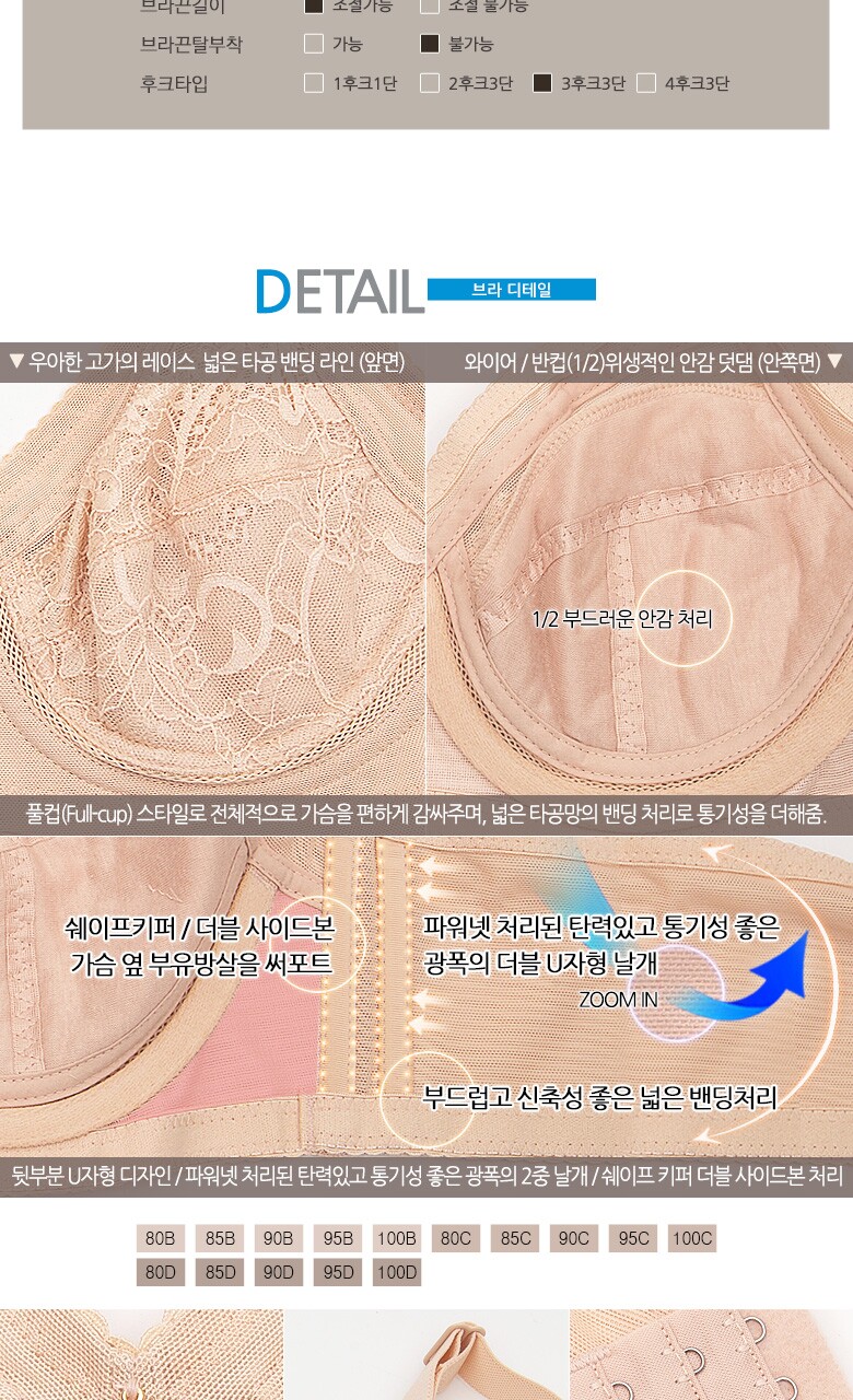 3. 치수 | 80B,85B,90B,95B,100B,80C,85C,90C,95C,100C,80D,85D,90D,95D,100D |
