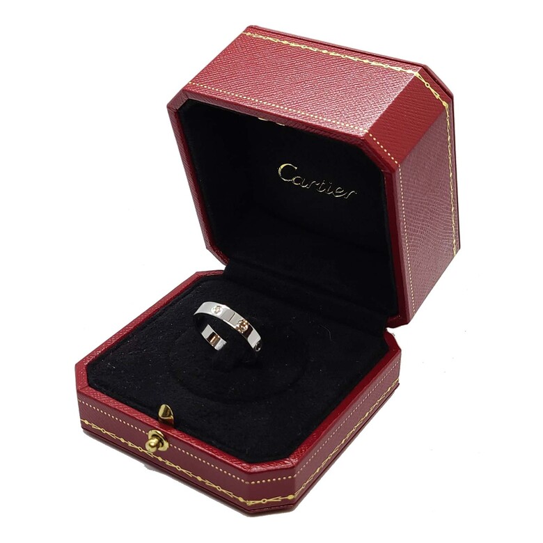 내용: 까르띠에 러브링 1p다이아반지입니다. 폭 4mm 사이즈 19호입니다.