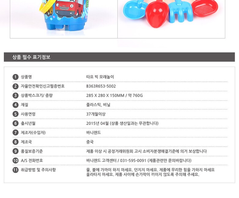 10. 취급방법 및 취급시 주의사항, 안전표시 (주의, 경고 등) | 상품상세참조 |