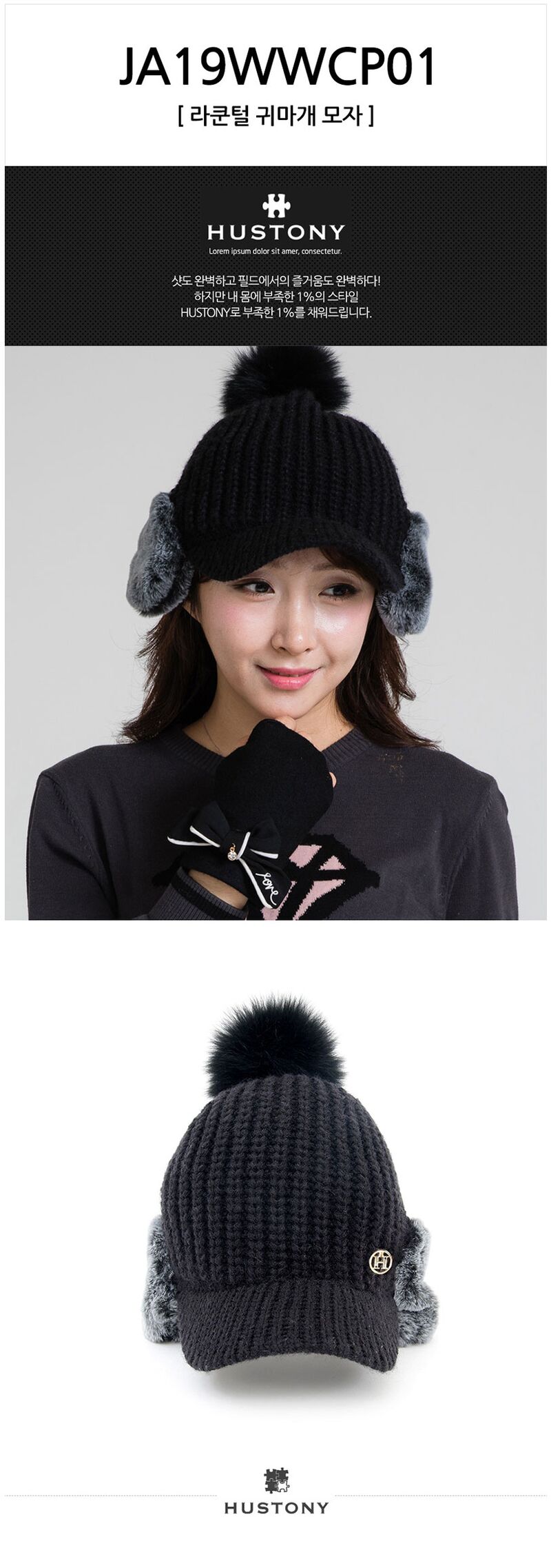 투딘 휴스토니 라쿤털 귀마개모자 여성용겨울골프모자
