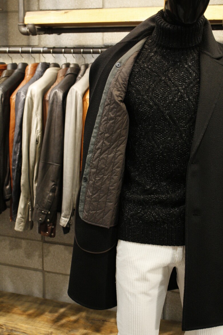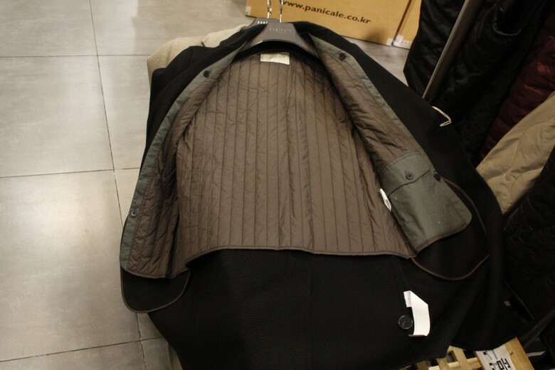 얇은 두께는 핸드메이드코트의 정점이자 단점이지만 탈부착되는 퀼팅내피가 있어서 보온성을 더해줄수 있습니다