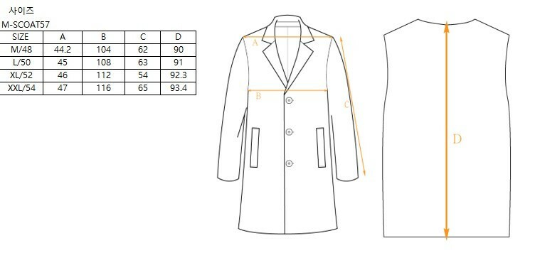 코트로는 상당히 슬림한편이며 소매도 살짝 짧은편이예요