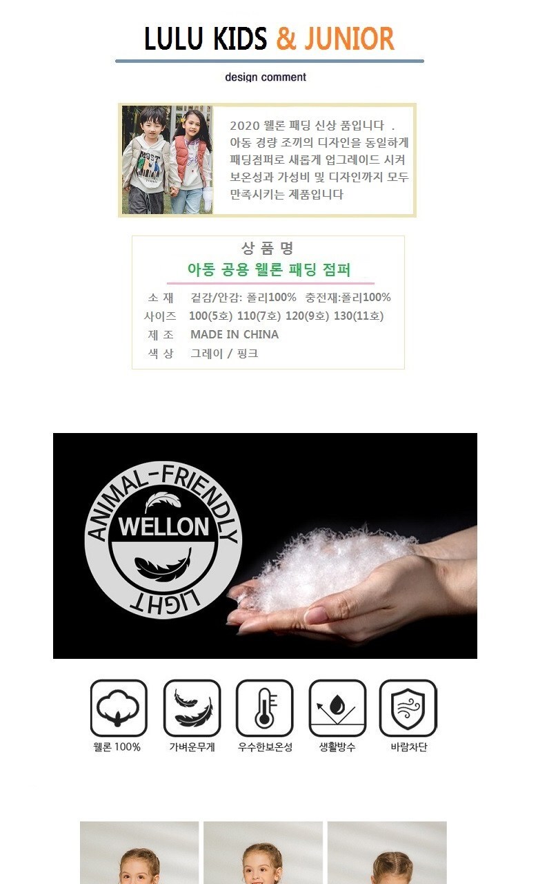 무료배송 아동 공용 후드 웰론 패딩점퍼