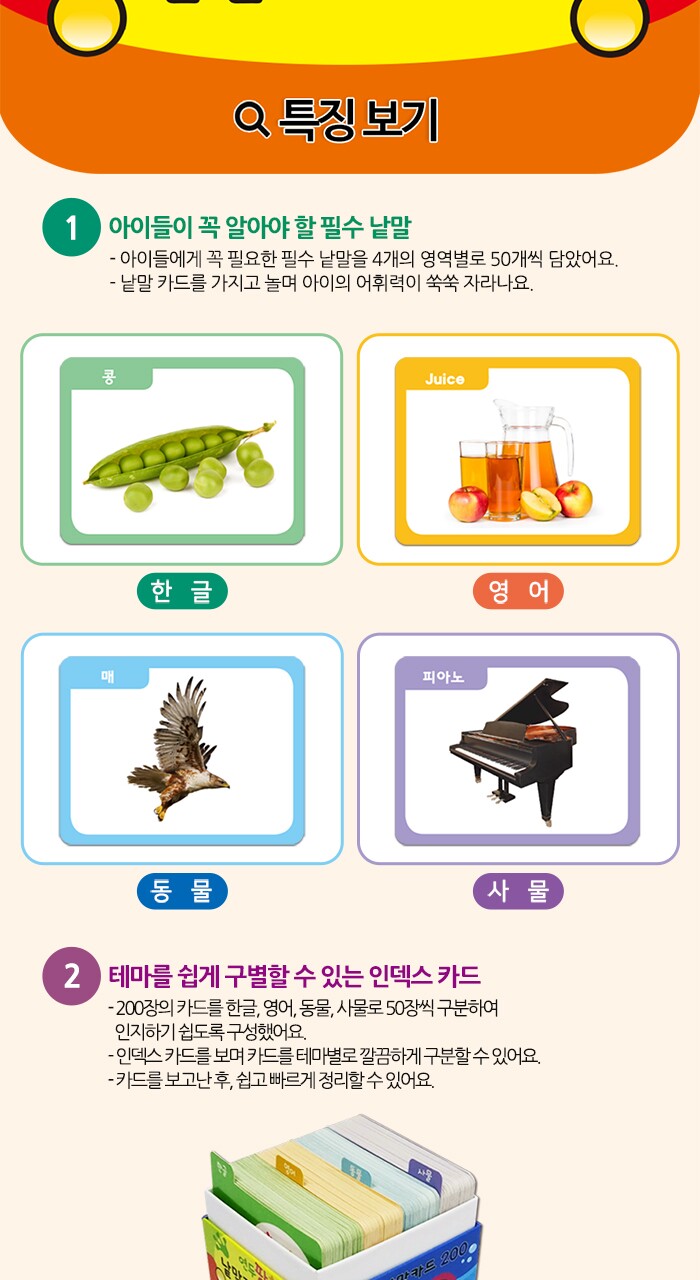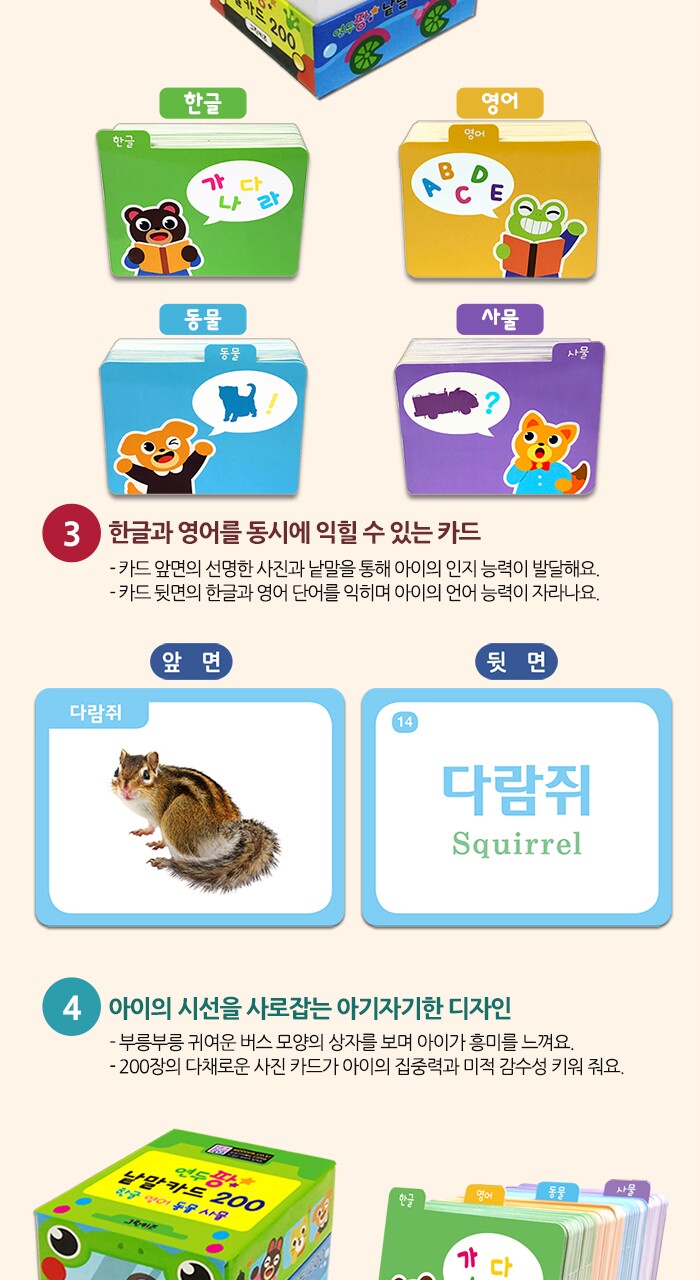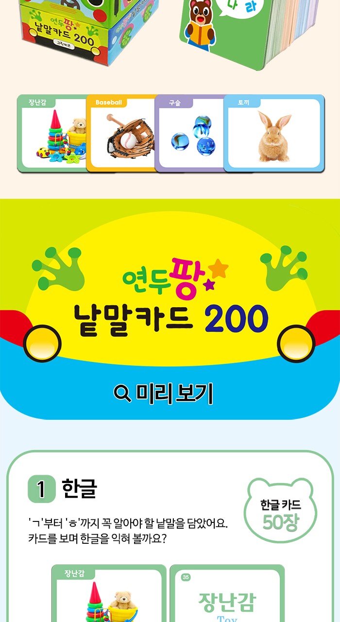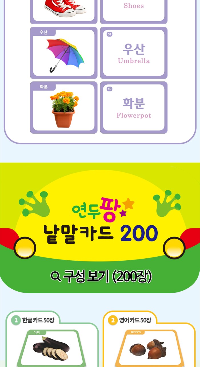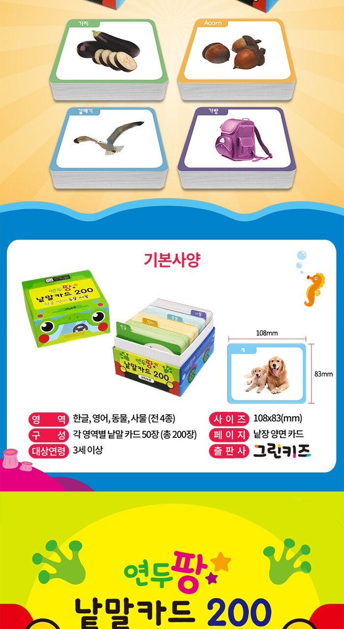 연두팡 낱말카드 200 (한글, 영어, 동물, 사물)