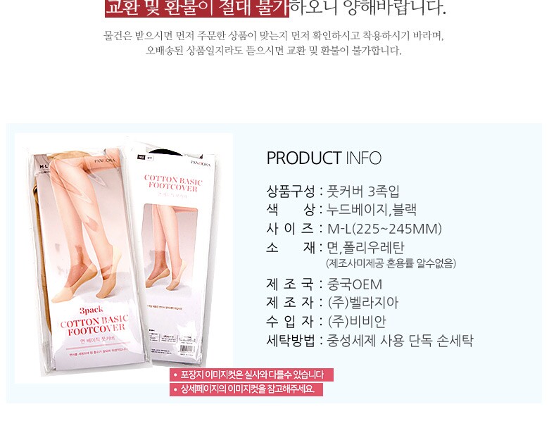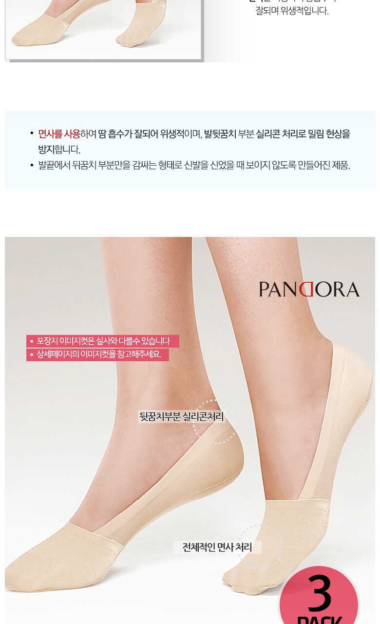 [판도라by비비안] 면 베이직 풋커버(3족입) ks1092