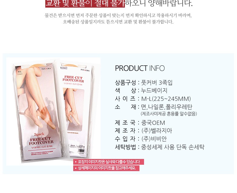 [판도라by비비안] 누디 프리컷 풋커버(3족입) ks1091