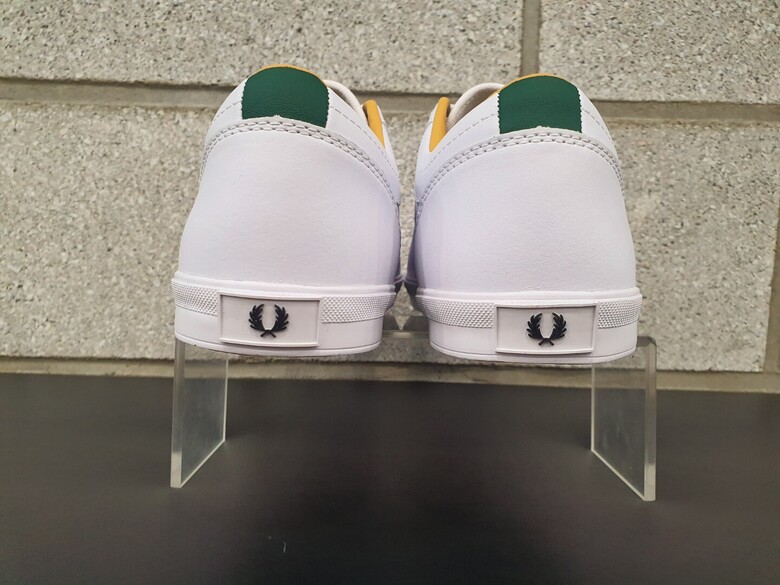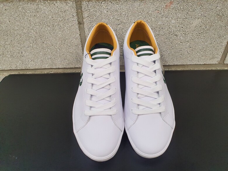 심플한 어퍼에 텅에는 프레드 페리 피케셔츠를 모티브로 한 트윈팁 라인 |*| 인솔에는 6mm 웨지로 쿠셔닝이 보강 되어 착화감이 한층 업그레이드 되었다