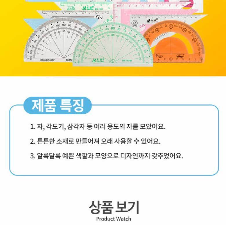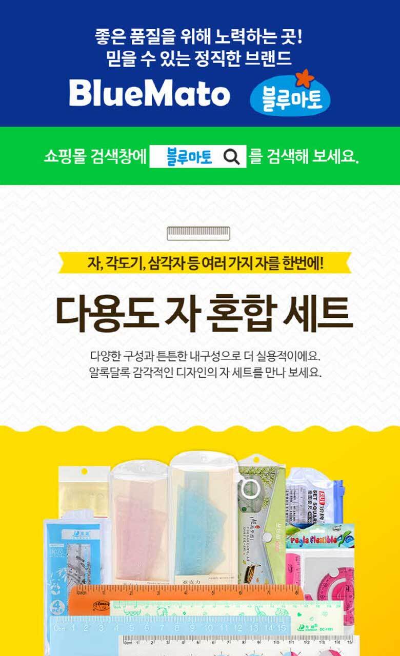 [블루마토] 삼각자외 자3종혼합세트1 (regle flexible)/ 15*28(cm) /OPP포장/4컬러(주황/초록/분홍/파랑)랜