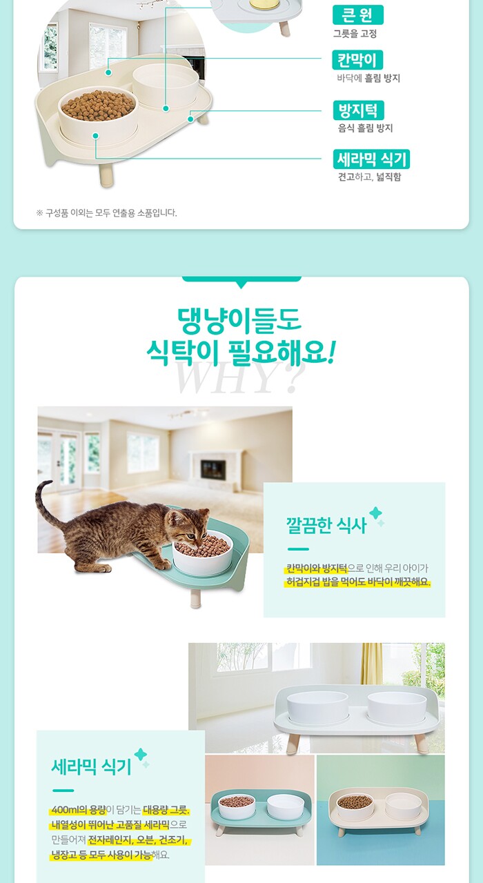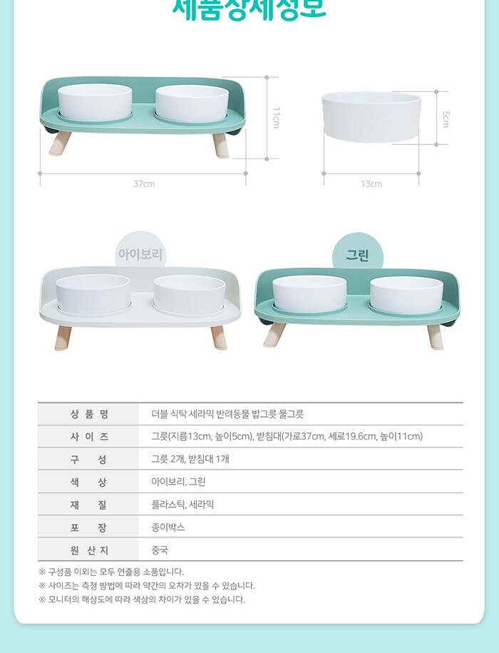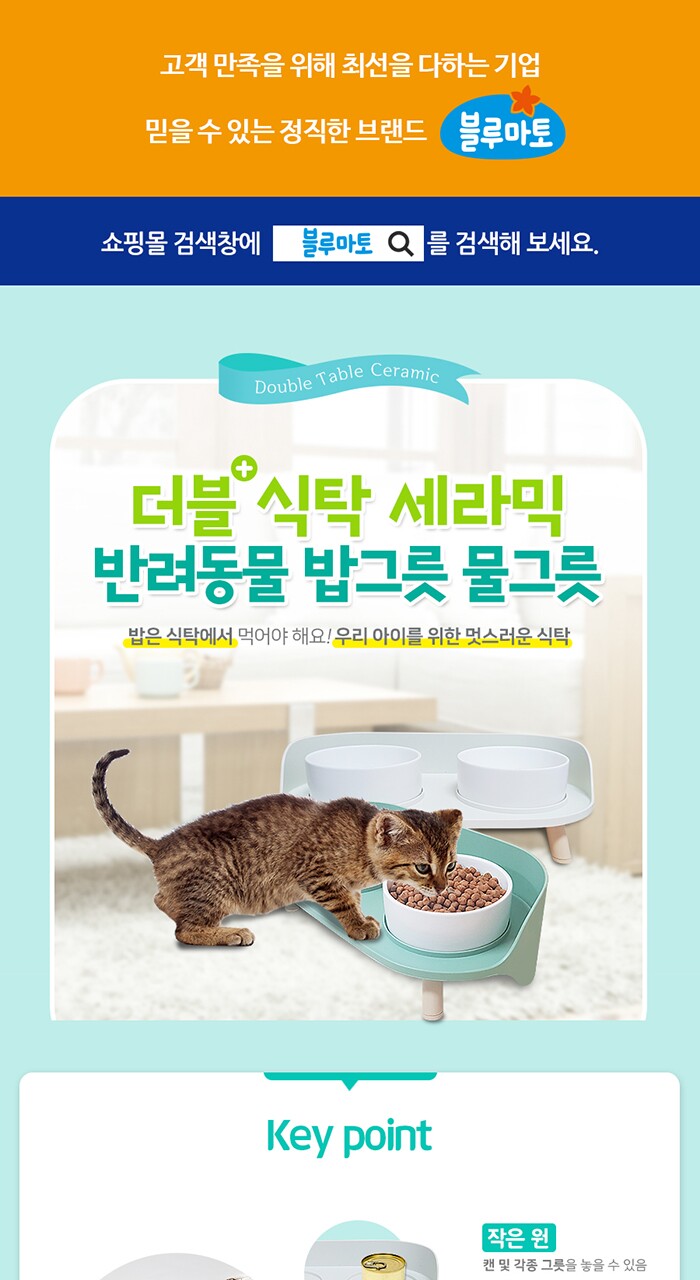 [블루마토] 더블 식탁 세라믹 반려동물 밥그릇 물그릇