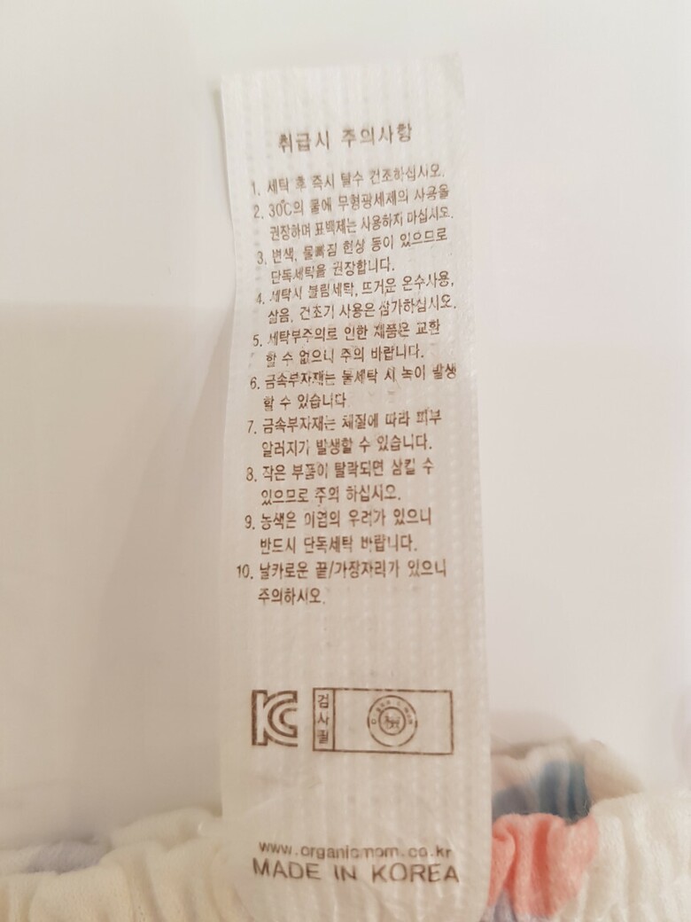 | 7. 세탁방법 및 취급시 주의사항 | 상세페이지 참조 |