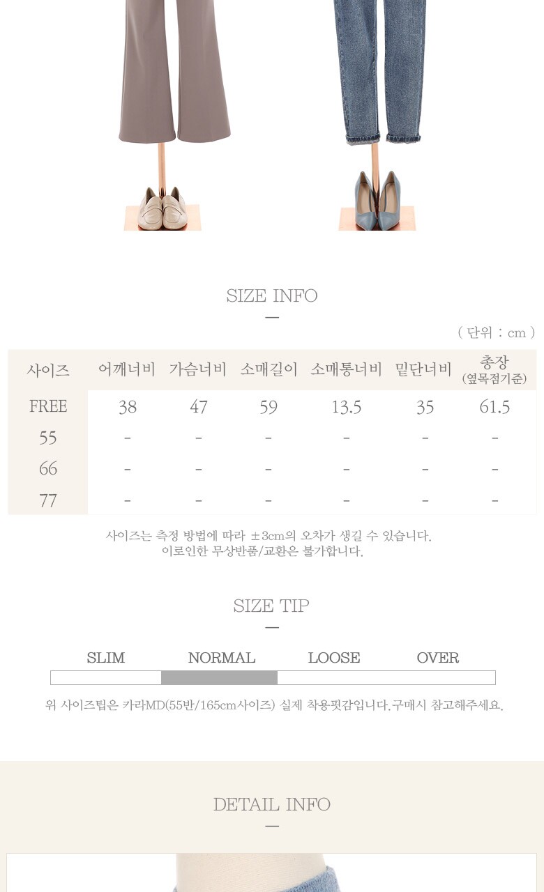 • 처음 배송된 상품상태와 다를 경우(세탁/착용 후 외출하신 경우) 반품이 불가합니다.