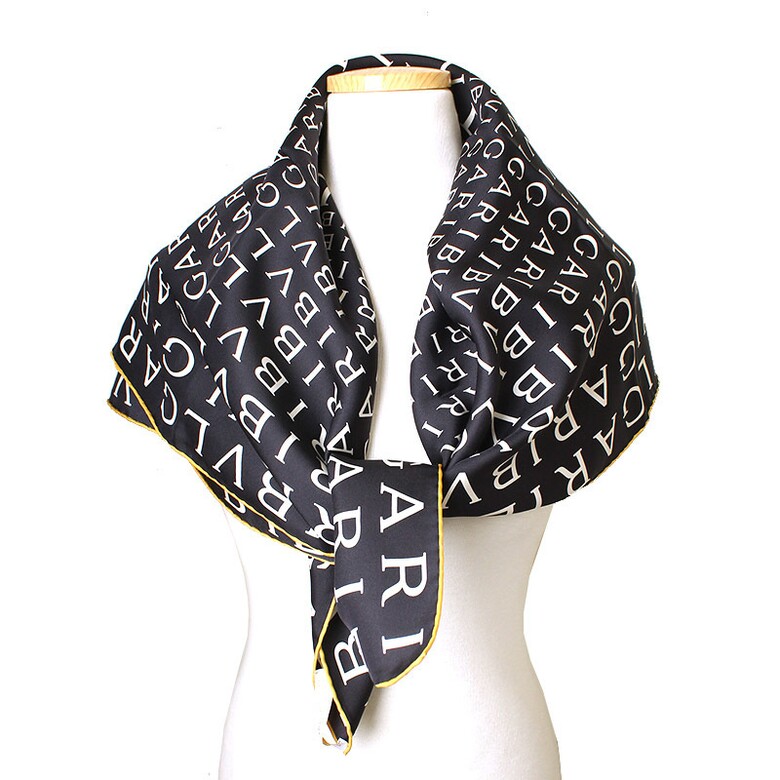 [중고명품] 불가리 로고 레터링 네이비 까레 스카프