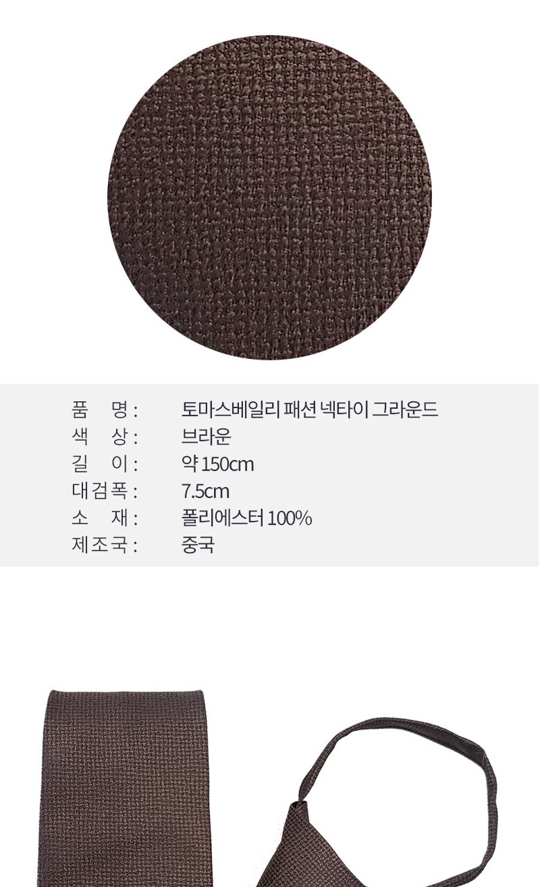 [THOMAS VAILEY] 토마스베일리 자동/지퍼넥타이-그라운드 브라운 7.5cm