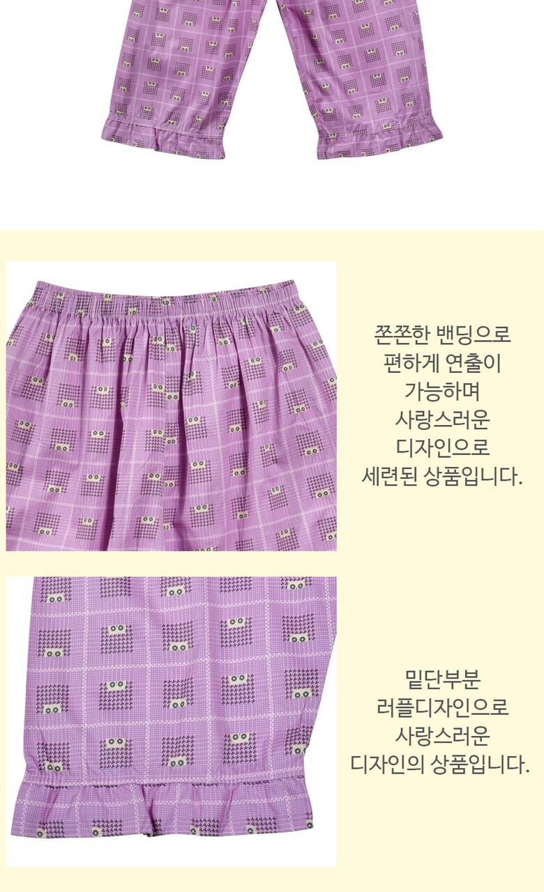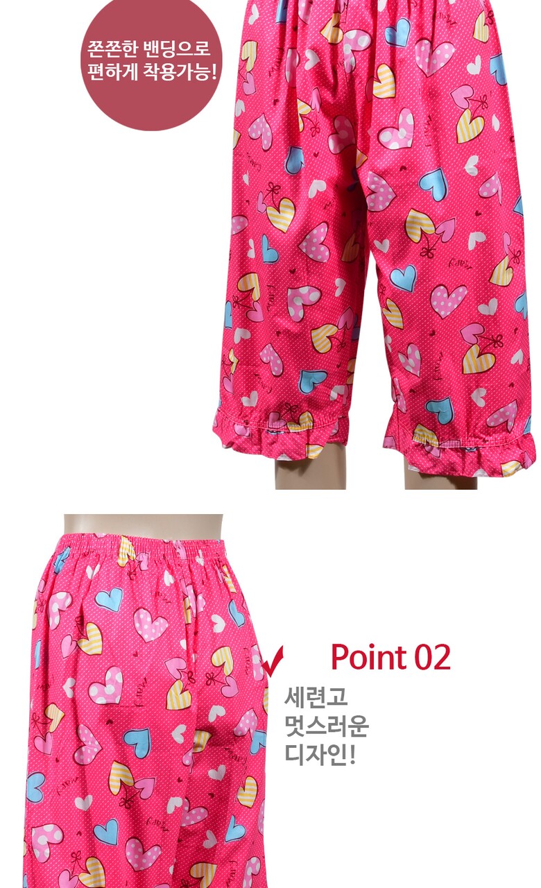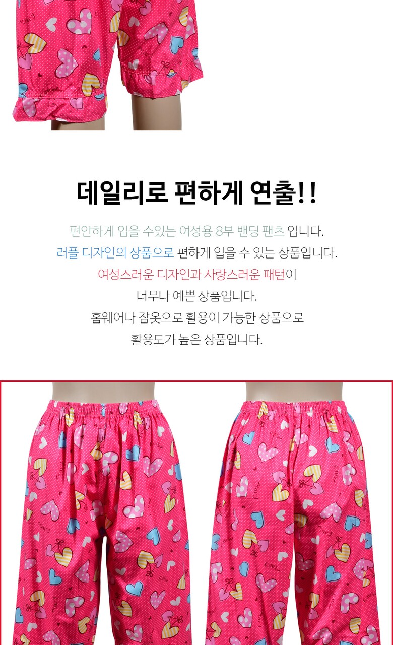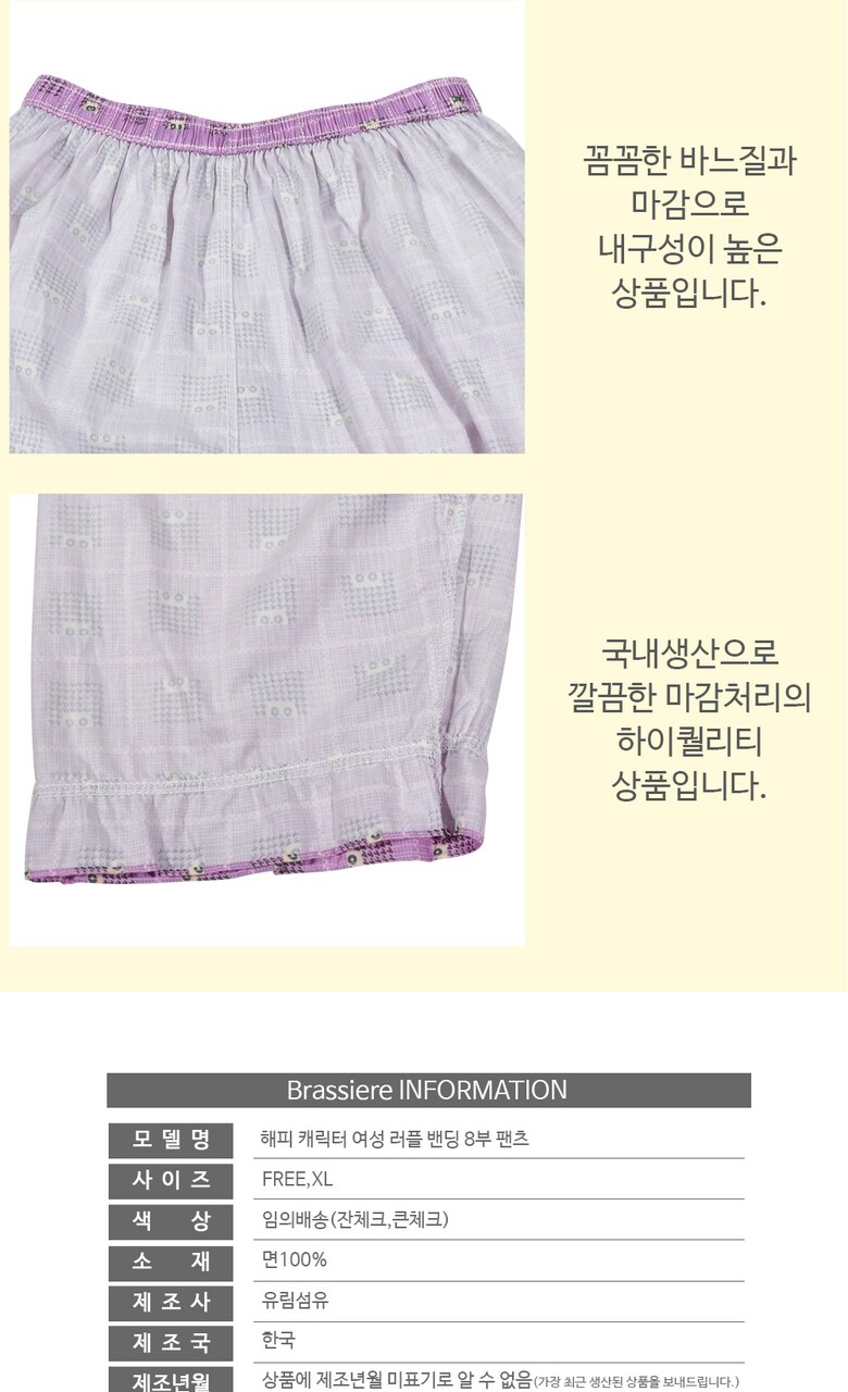 [슬레진저]해피 캐릭터 여성 러플 밴딩8부팬츠