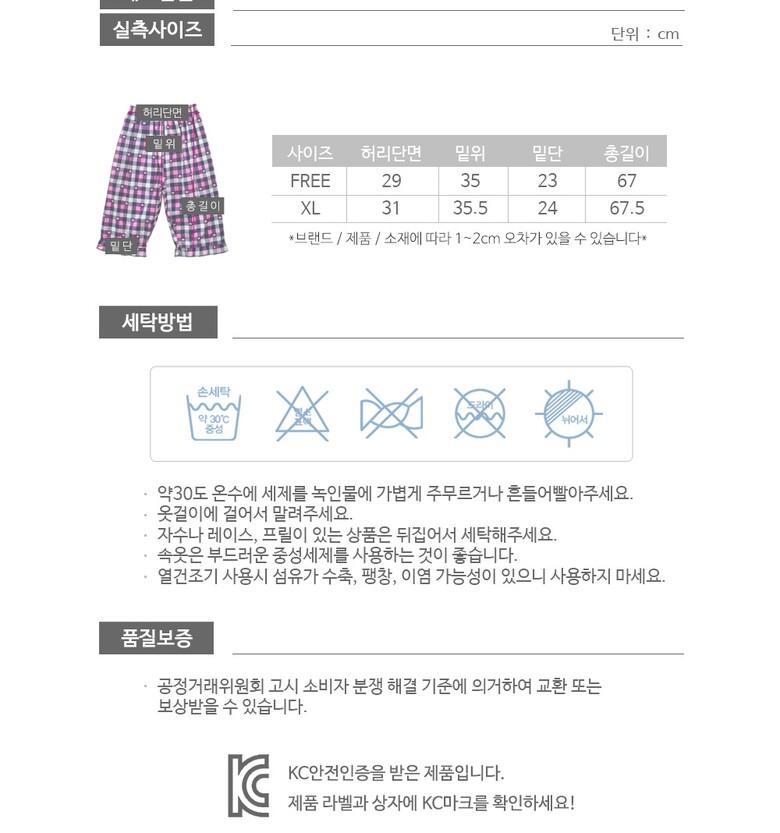 | 6. 세탁방법 및 취급시 주의사항 | 30도 온수로 중성세제를 사용하여 손세탁 및 분리세탁을 권장합니다. |