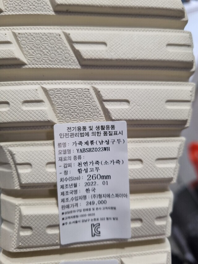 | 1. 제품 소재 (운동화인 경우에는 겉감, 안감을 구분하여 표시) | 소가죽 |