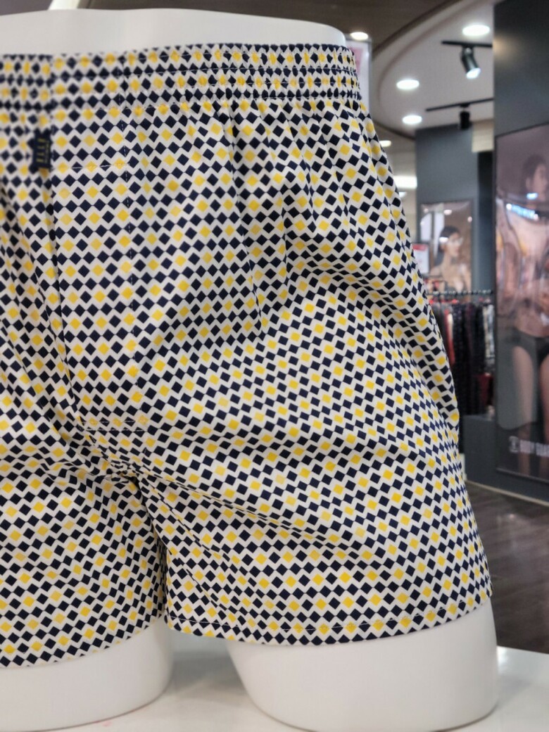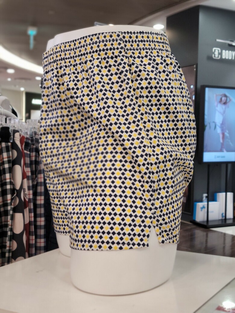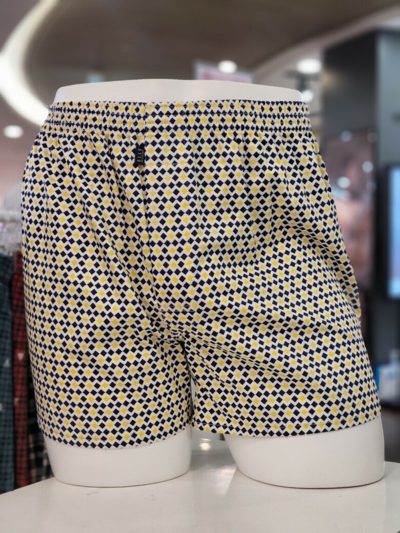 22SS, 스몰 다이아몬드 패턴에 캐쥬얼한 옐로우 색상이 포인트인 남성 드로즈입니다.