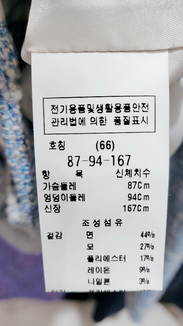 | 1. 제품 소재 (섬유의 조성 또는 혼용률을 백분율로 표시, 기능성인 경우 성적서 또는 허가서) | 겉감:면 44%, 모 27%, 폴리에스테르 17%, 레이온 9%, 나일론 3% |