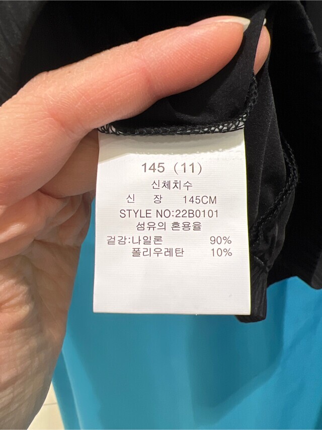 | 1. 제품 소재 (섬유의 조성 또는 혼용률을 백분율로 표시, 기능성인 경우 성적서 또는 허가서) | 나일론90 폴리우레탄10 |