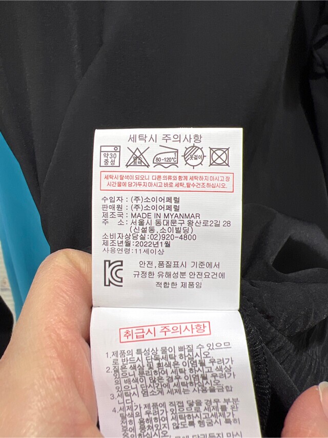| 6. 세탁방법 및 취급시 주의사항 | 손세탁 |