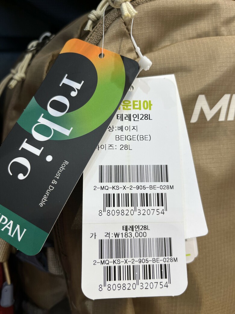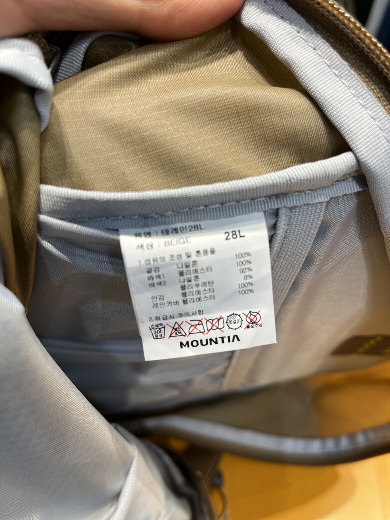 | 2. 소재 | 겉감- 나일론 100% 배색1-폴리에스터100% 배색2- 나일론 92%, 폴리우 |