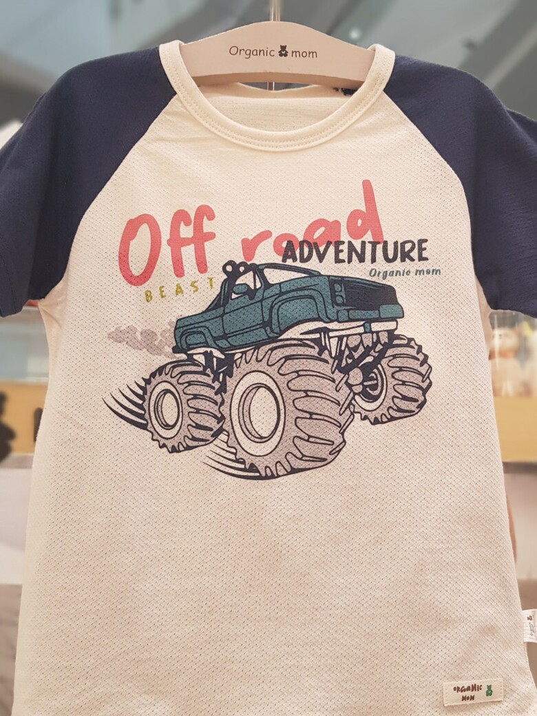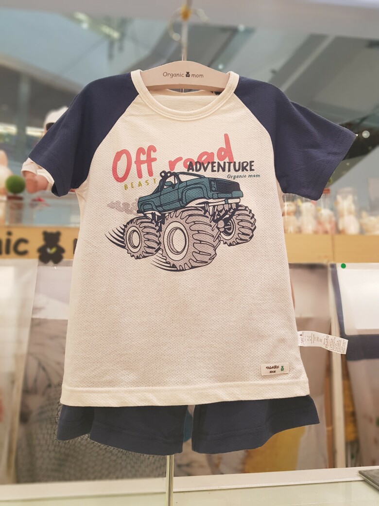 라글란 소매의 상의로 활동성을 높여주고 터프한 오프로드 자동차가 아이의 개성을 더해줍니다.
