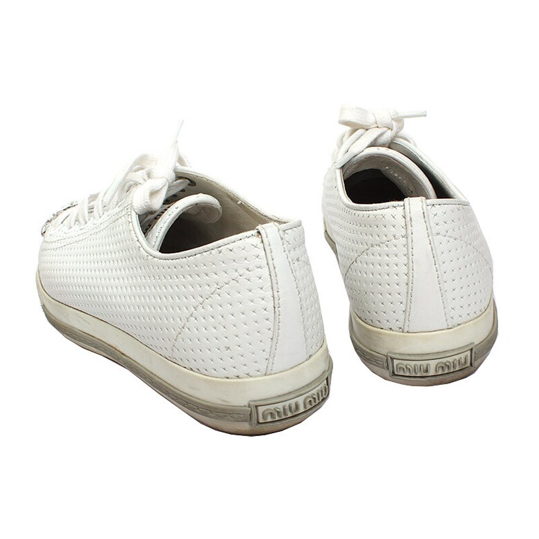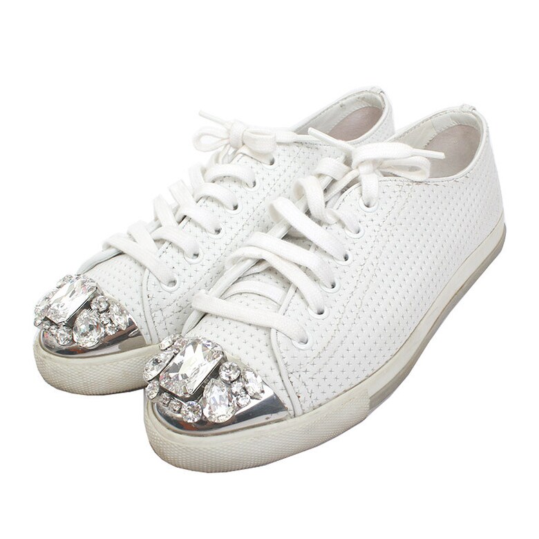 [중고명품] 미우미우 화이트 크리스탈 스니커즈 36