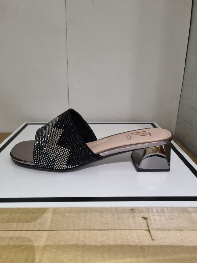 에스콰이아 여성 발편한 큐빅장식 세미정장 뮬 샌들 굽4센치PFBMSD648