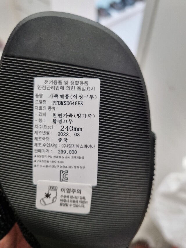 | 1. 제품 소재 (운동화인 경우에는 겉감, 안감을 구분하여 표시) | 양가죽 |
