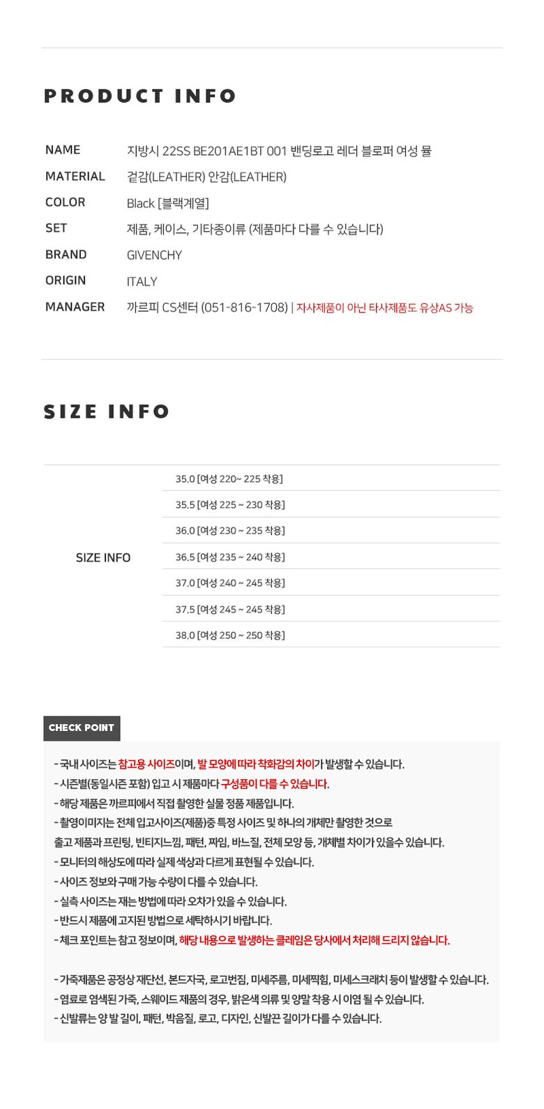 | 3. 치수 | 36 / 36.5 / 37 / 37.5 / 38 / 38.5 / 39 / 40 / 41 |