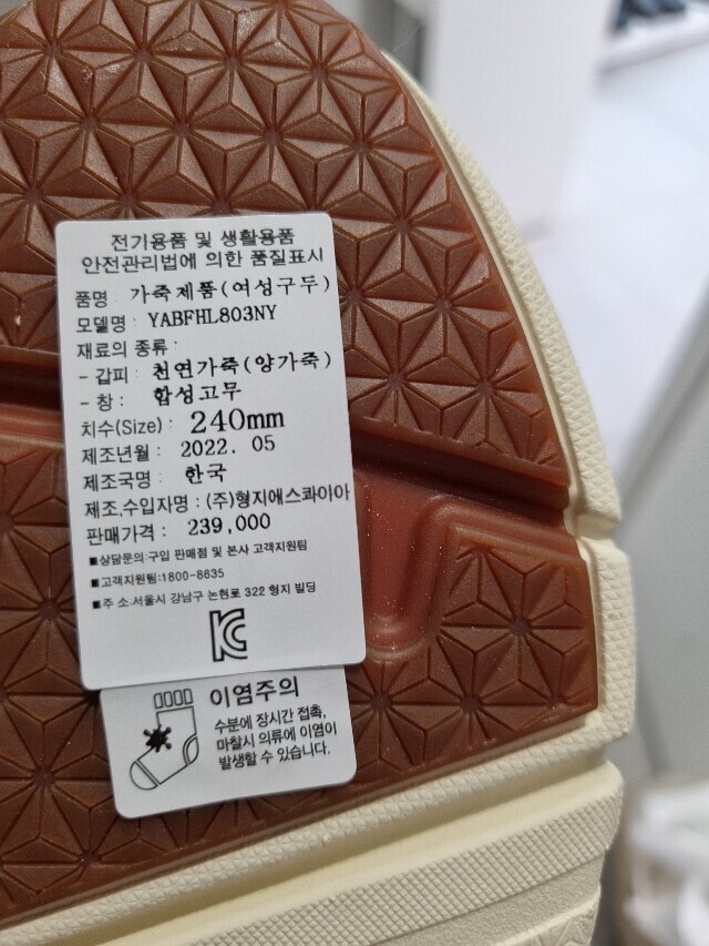 1. 제품 소재 (운동화인 경우에는 겉감, 안감을 구분하여 표시) 양가죽