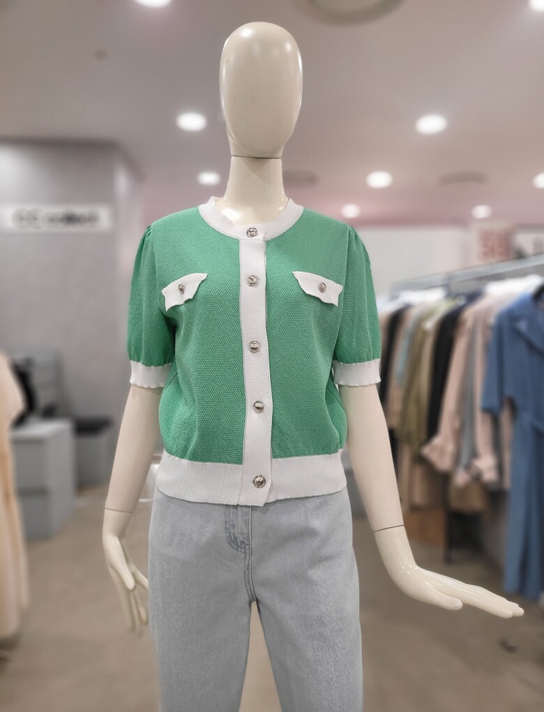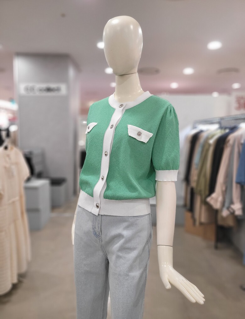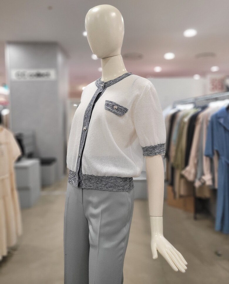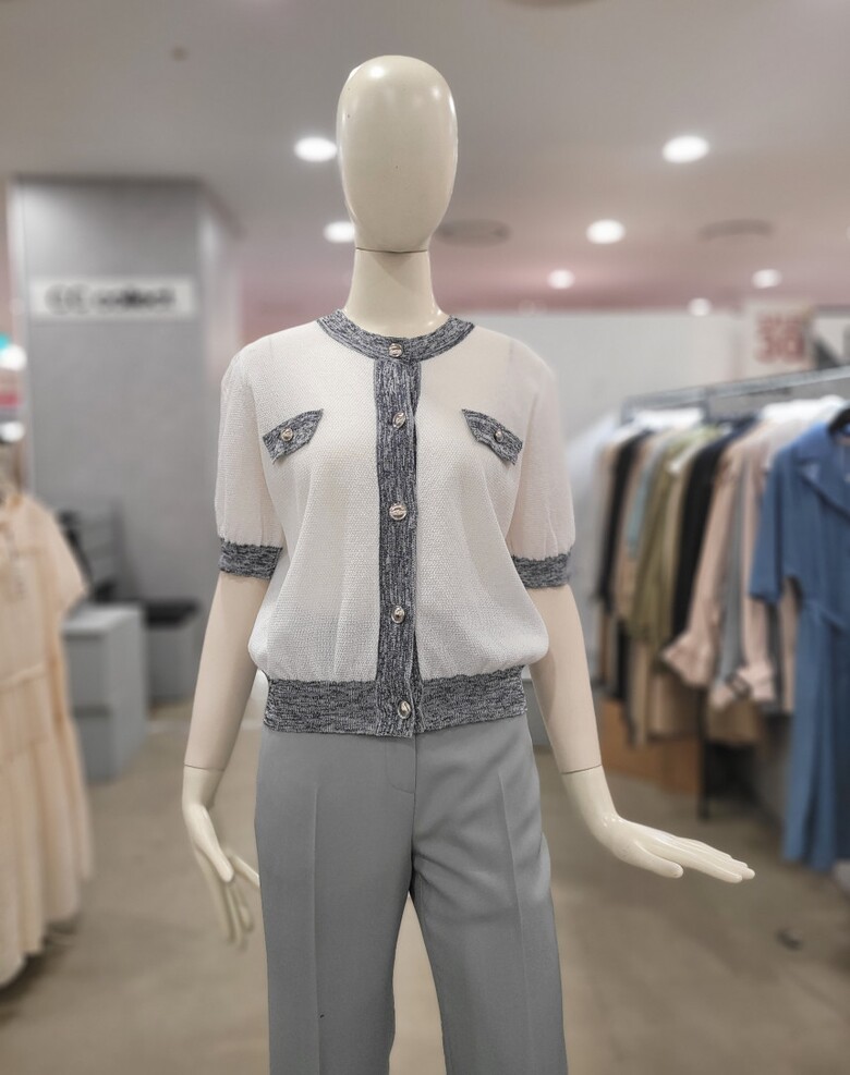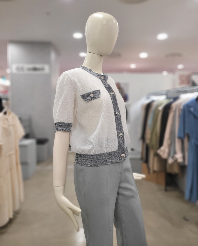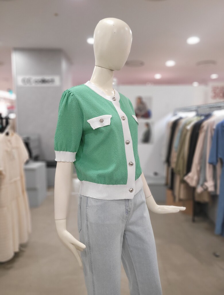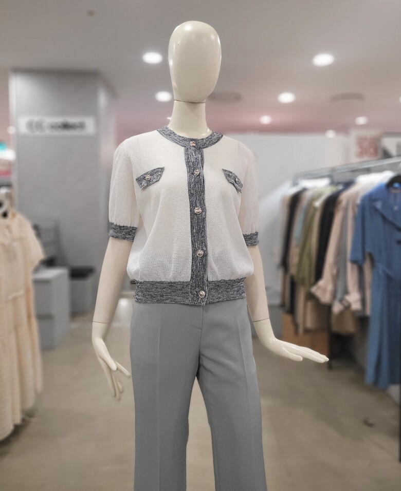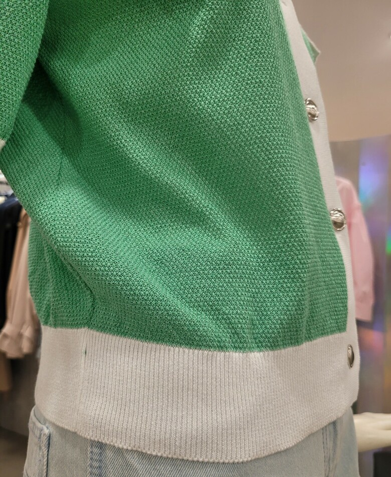 씨씨콜렉트 라운드넥 배색 라인 니트 카디건 E223KSL104