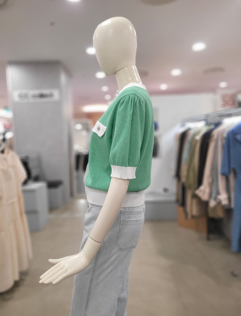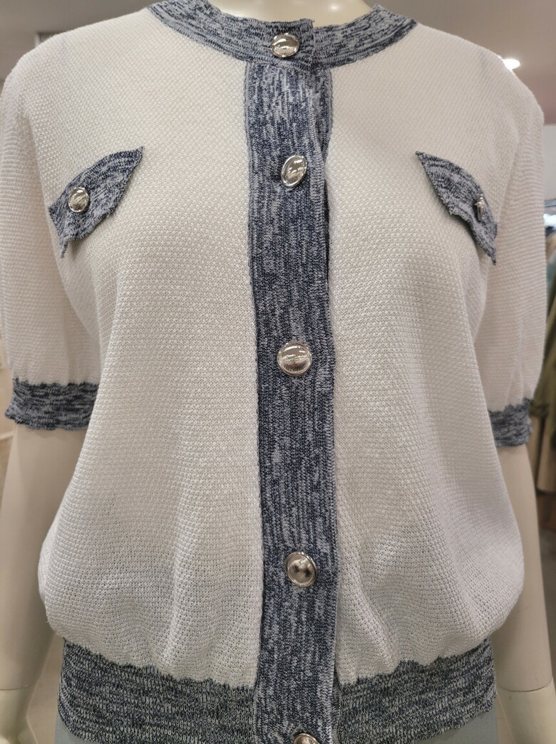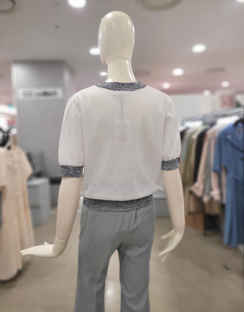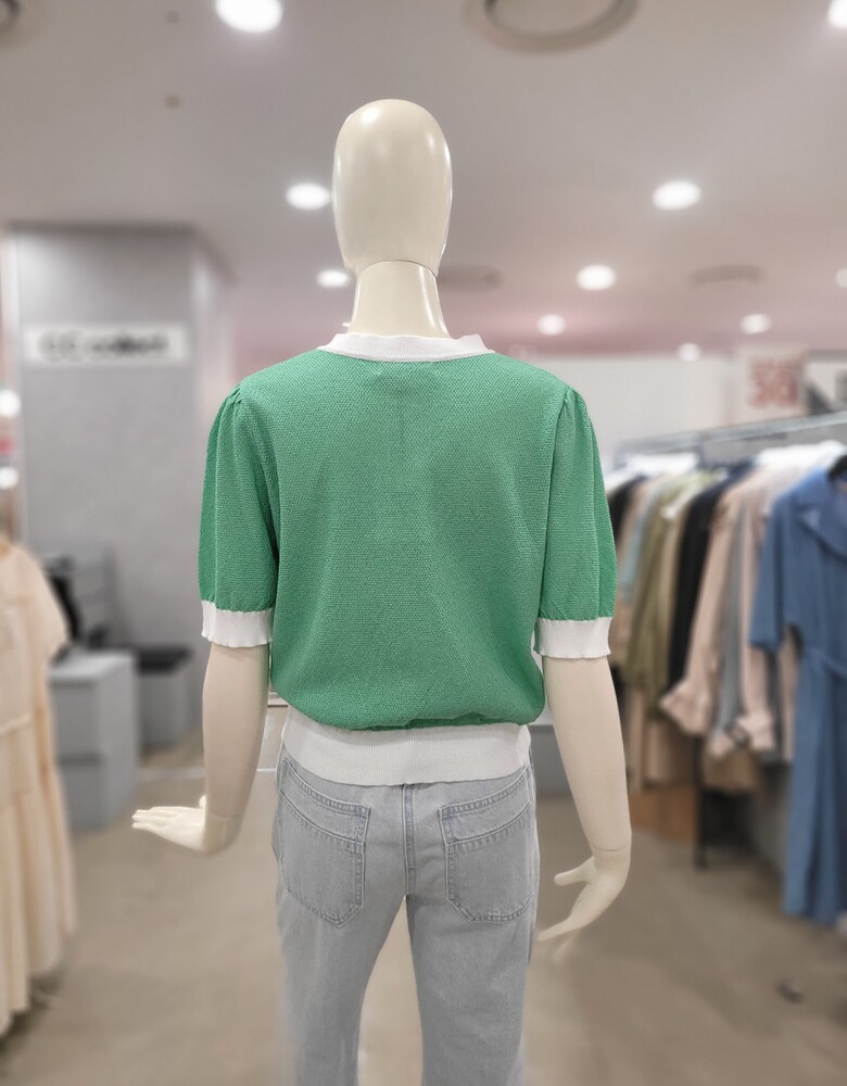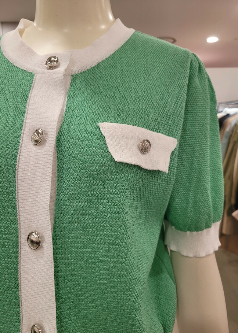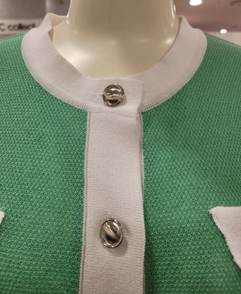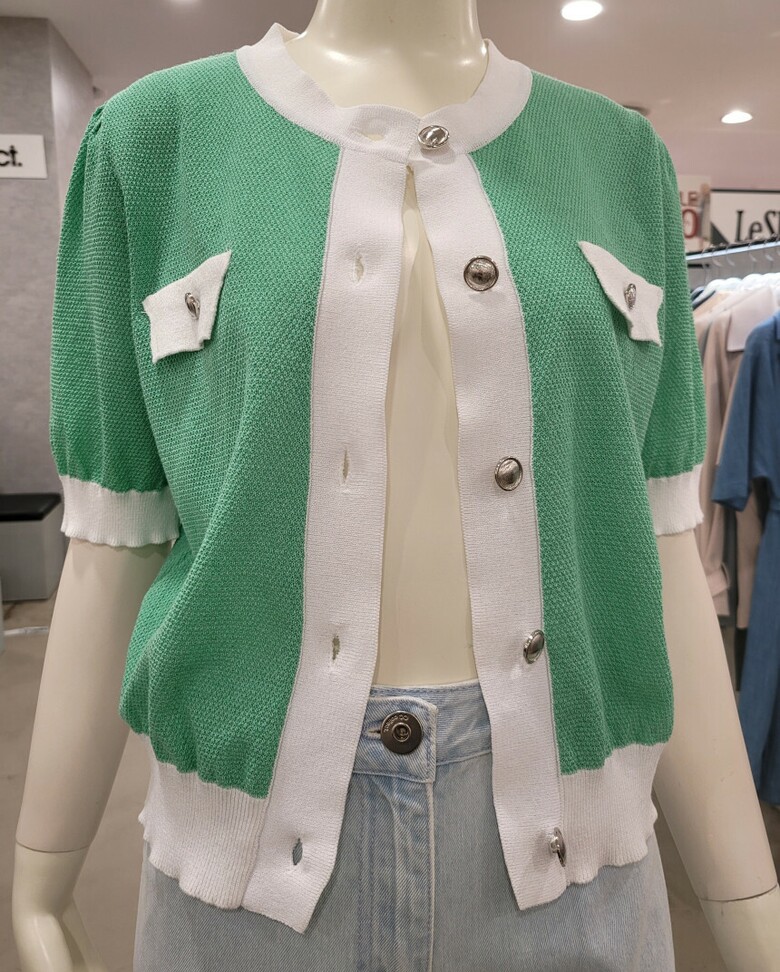 씨씨콜렉트 라운드넥 배색 라인 니트 카디건 E223KSL104