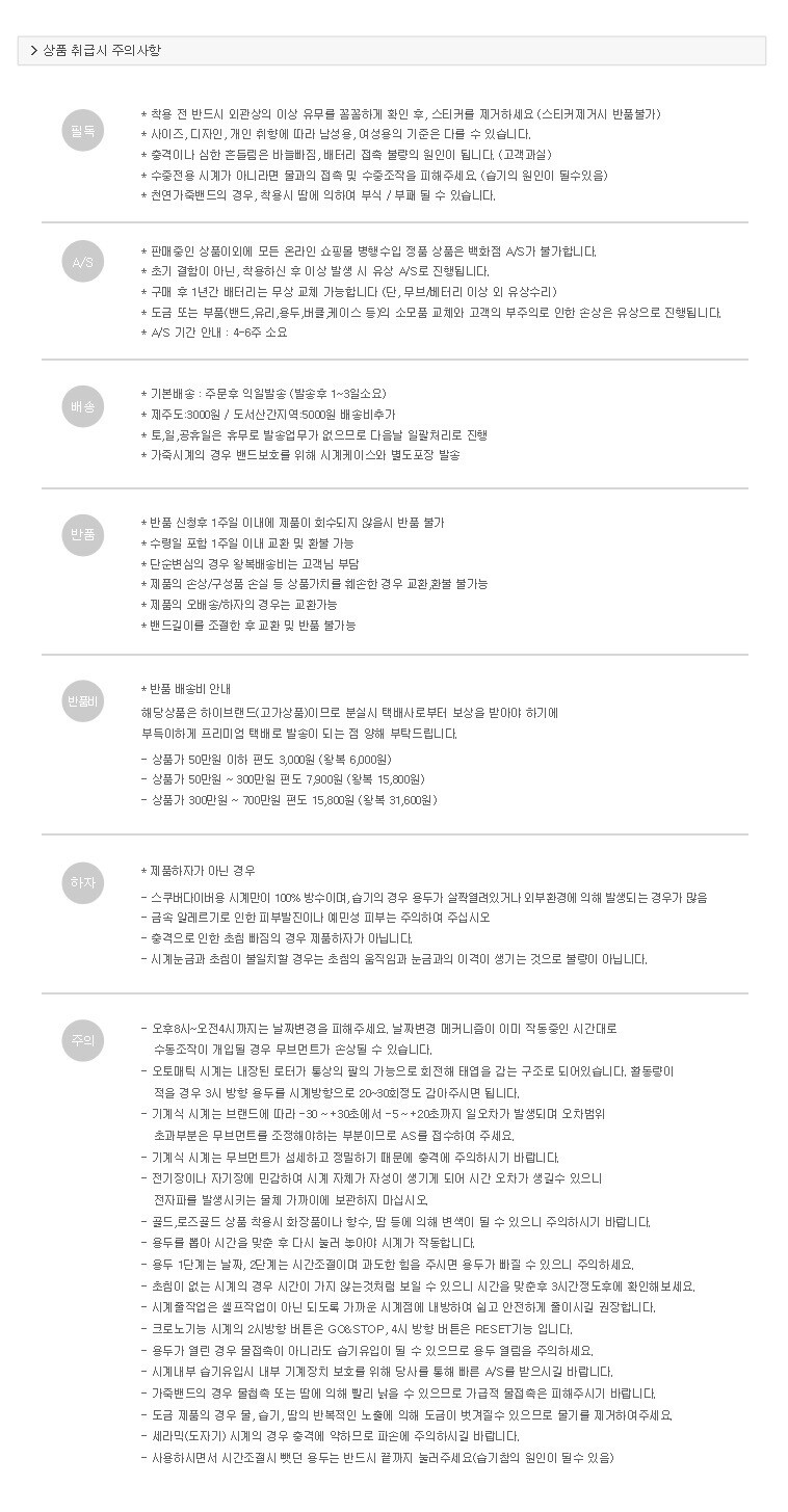 | 7-2. 시계 - 기능, 방수 등 | 상세페이지 참조 |