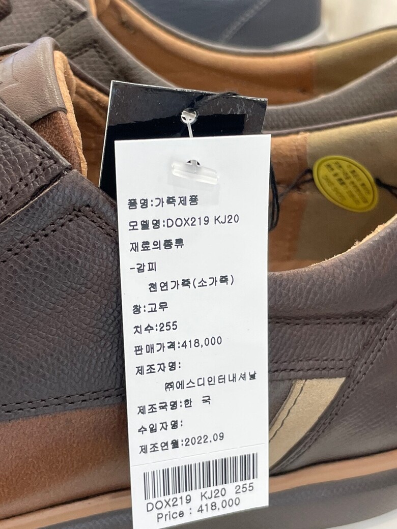 | 1. 제품 소재 (운동화인 경우에는 겉감, 안감을 구분하여 표시) | 소가죽 |